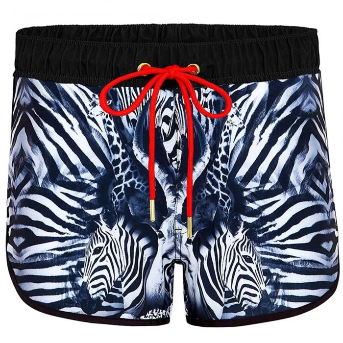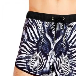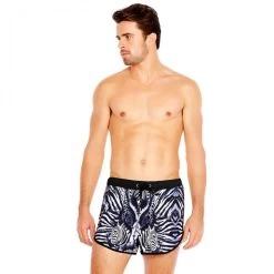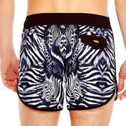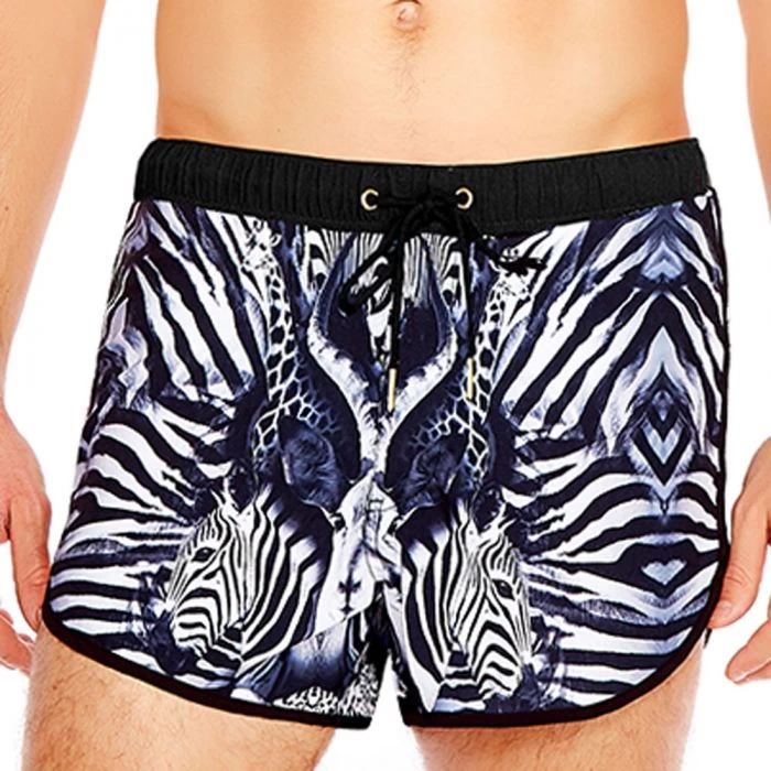 The running shorts are an athletic style short featuring a shorter leg length and elastic waistband to enhance mobility and comfort.