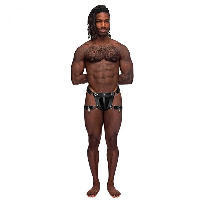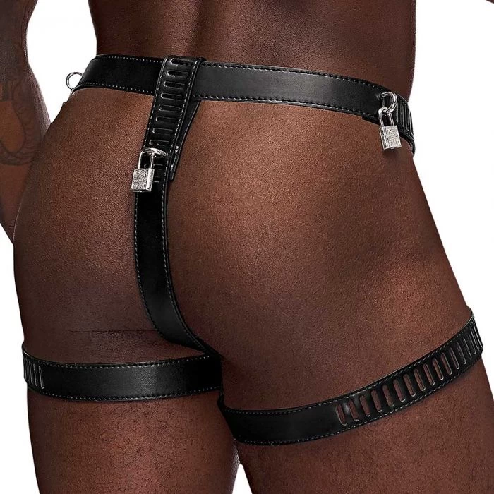 - Adjustable waist, leg and T-back straps secured with locks & keys