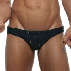 Australian swimwear brand, Marcuse is HOT! Super low swim trunks for those brave enough to bare some skin and look SUPER sexy! Simple design with embroidered gold Macuse logo on the back.