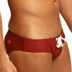 Australian swimwear brand, Marcuse is HOT! Super low swim briefs for those brave enough to bare some skin and look SUPER sexy! Simple design with embroidered gold Macuse logo on the back.