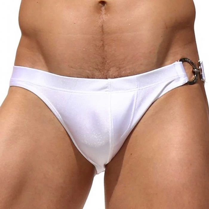 - Euro-cut bikini-brief made from shiny stretch-nylon