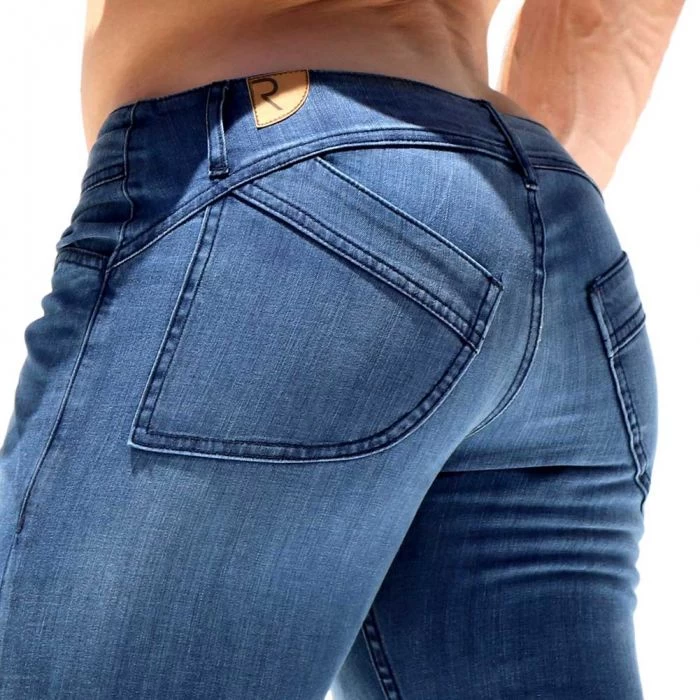 - Slanted back patch pockets and hybrid back yoke/waistband for a killer shape at the rear.