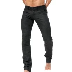 - Slim-fit straight-leg jeans made from imported Italian stretch denim.
